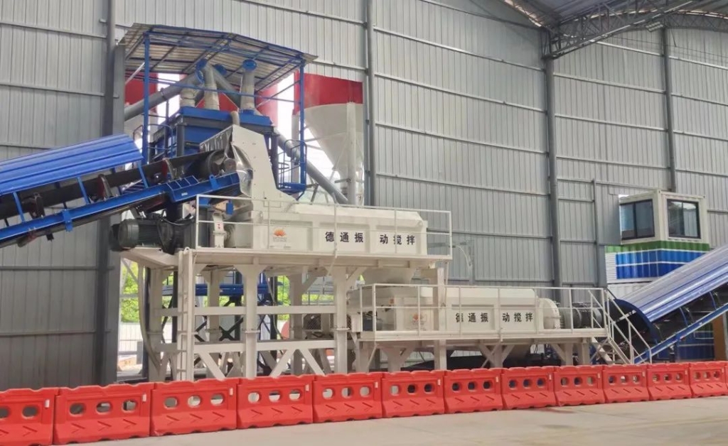 本次試驗(yàn)路樁號為K154+160-K154+460右幅,長度300m,厚度20cm,水泥穩(wěn)定碎石料采用德通800型雙拌缸振動攪拌設(shè)備生產(chǎn)。