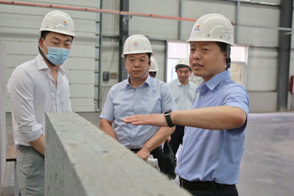 在德通裝配式建筑墻板生產(chǎn)線項目施工現(xiàn)場,劉濤市長向德通裝配式建筑科技公司總經(jīng)理韓斌詳細了解裝配式建筑墻板產(chǎn)品工藝優(yōu)勢、成本和市場應(yīng)用等情況,勉勵德通不斷提高工藝水平,進一步拓展市場。