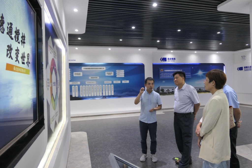 公司副總經(jīng)理孔鮮寧、總經(jīng)理助理穆亞靜、生產(chǎn)總監(jiān)陳世偉等陪同符忠軒會(huì)長(zhǎng)一行參觀德通多媒體展廳,匯報(bào)振動(dòng)攪拌技術(shù)研發(fā)及應(yīng)用成果。