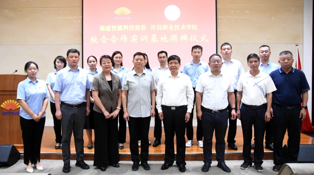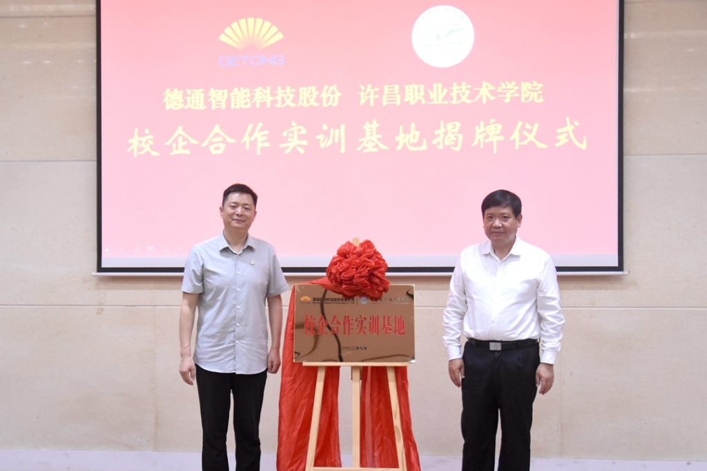 9月8日上午,許昌職業(yè)技術(shù)學(xué)院黨委書記尹二軍與德通智能科技股份有限公司董事長張良奇一起,共同為雙方“校企合作實(shí)訓(xùn)基地”揭牌。