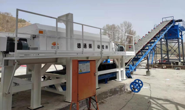 振動(dòng)攪拌采用攪拌軸和攪拌葉片作為振動(dòng)源,在攪拌的同時(shí),攪拌軸、攪拌臂、攪拌葉片同時(shí)釋放激振力。攪拌裝置每分鐘釋放1500次以上的振動(dòng)彈力波,攪拌裝置每次對(duì)混合料撞擊能量達(dá)到靜力攪拌機(jī)至少5倍以上,使水泥等細(xì)集料充分彌散,水泥水化更加充分,水泥水化產(chǎn)物與骨料表面粘結(jié)牢固,強(qiáng)度、耐久性及耐沖刷性等指標(biāo)明顯提升。